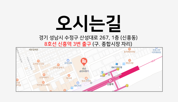 주소 : (13353) 경기 성남시 수정구 산성대로 267 (신흥동) 1층